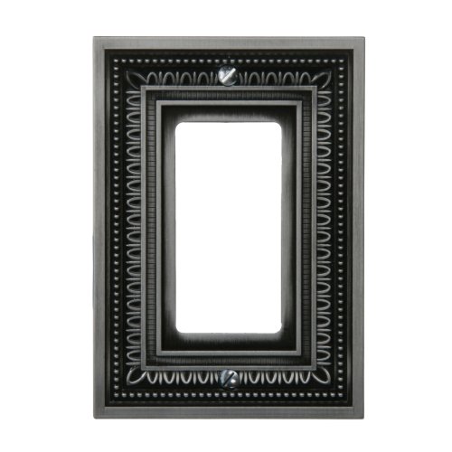 - Antique nickel cast metal wallplate designed with ornamental lines and curves
