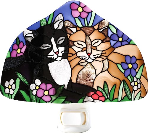 The Detailed Description of Joan Baker Designs NL1015 Tiffany Cats Art Glass Night Light, 4-1/2 by 3-InchFeatures