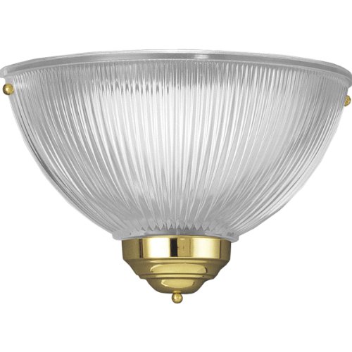 Progress Lighting P7126-10 Wall sconce with clear prismatic glass bowl. Polished Brass Polished Brass 1-light Wall Sconce Wall sconce with clear prismatic glass bowl. Polished Brass finish Clear prismatic glass 12-1/4 In. Width x 7-3/4 In. Height Uses (1) 100-watt medium base bulb