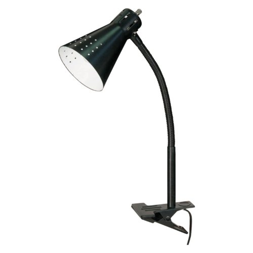 60/836 Features: -Clip on lamp.-Transitional style.-UL listed for dry locations. Includes: -Accommodates (1) 40W S11N incandescent bulb (included). Color/Finish: -Black finish. Dimensions: -Overall height: 13''.
