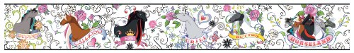 This border is a colorful rendition of the online game -Inch Horse Land-Inch. Included in the western wilderness are favorite characters Sarah/Alma/Molly/Chloe and Zoey. This scenic border comes with manicured lawns, equestrian horses and a community of horse lovers. This is a -Inch Sure Strip-Inch product noted for its easy installation and easy removal. This product is Made in the USA.