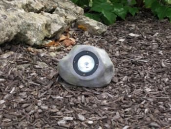 Spice up your garden with this solar-powered accent light. Installation is as easy as picking a spot for this LED light. Integrated solar panel on top powers a white LED enhanced by a chrome reflector. Light features a realistic stone finish. A perfect accent for your landscape.