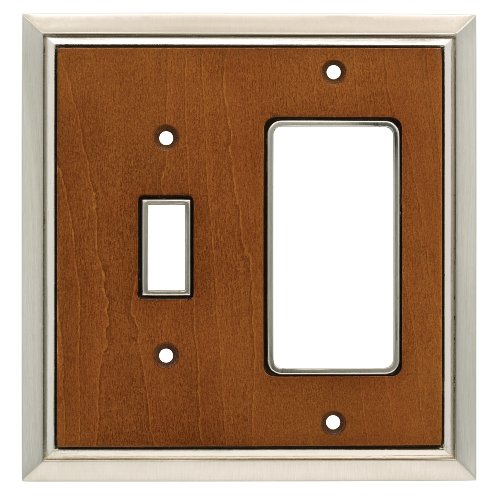 The Detailed Description of Liberty Hardware 126476 Wood Insert Single Switch/Decorator Wall Plate, Satin Nickel and Dark CaramelFeatures
