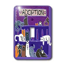 Cats, Cat, Kittens, Kitten, Cat Adoption, Cat Rescue, Pet Adoption, Cat Cartoon Art Light Switch Cover is made of durable scratch resistant metal that will not fade, chip or peel. Featuring a high gloss finish, along with matching screws makes this cover the perfect finishing touch.